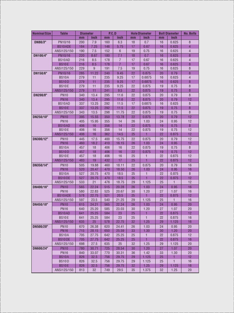 Flange Chart Bolt Sizes as Per Dn Equipment Mechanical Engineering